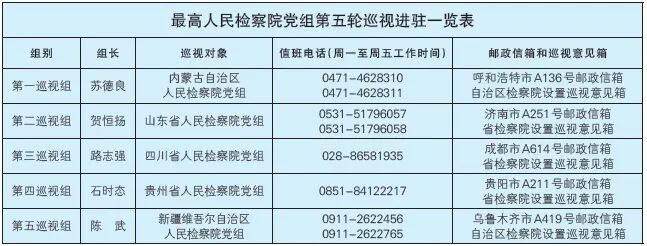 根据最高人民检察院党组统一部署,最高检党组第五轮巡视分别对内蒙古、山东、四川、贵州、新疆5个省级检察院党组开展为期两个月的常规巡视。10月14日,最高检党组召开第五轮巡视动员部署会,其后开展了为期两天半的巡前培训。近日,各巡视组完成巡视进驻。