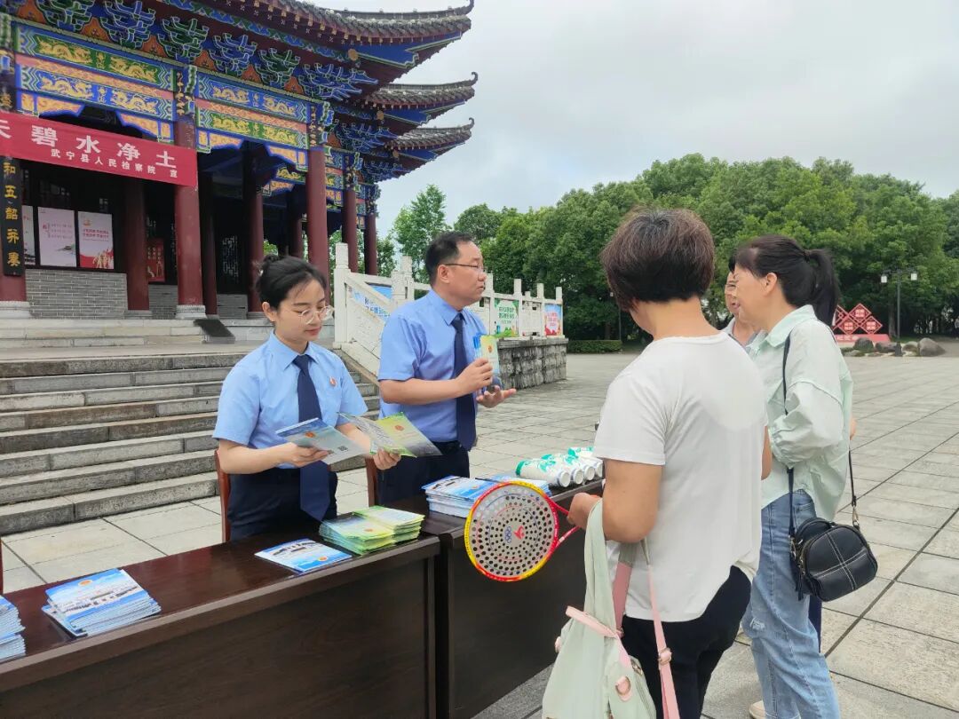 为进一步宣传公益诉讼检察职能,增强检察公益诉讼社会影响力,普及公益诉讼法律知识。2024年5月23日,武宁县人民检察院在县八音楼广场积极开展了公益诉讼宣传活动。